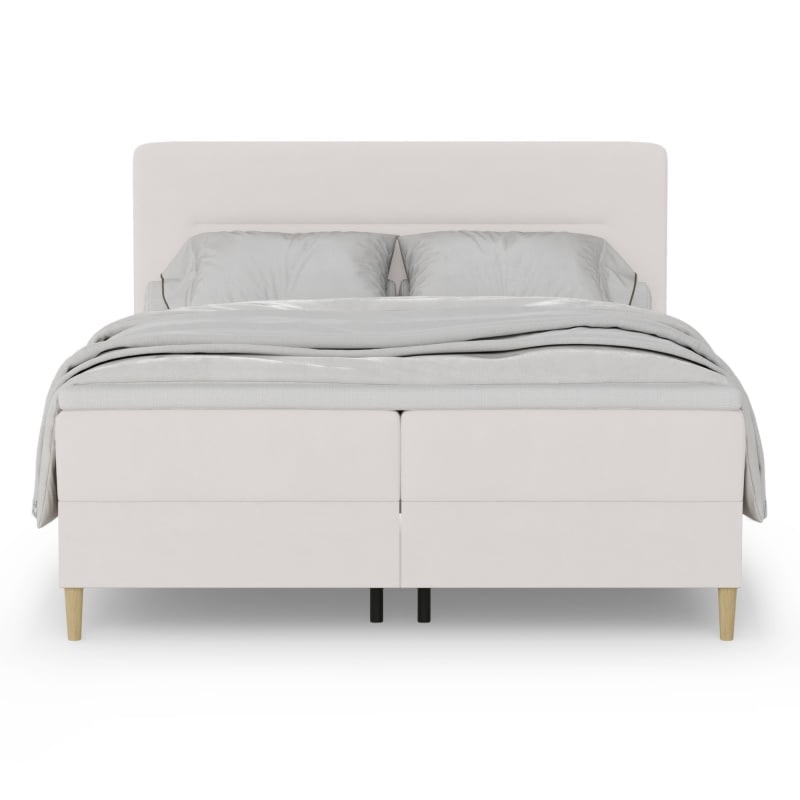 Łóżko Willow prezentuje nowoczesny design, który łączy w sobie prostą formę z funkcjonalnym wyposażeniem. Jego wysoki zagłówek podzielony na dwie, miękkie poduchy, gwarantuje wygodę i komfort podczas relaksu przy ulubionej książce czy serialu. Kieszonka w bocznej części łóżka, pomoże ci przechować telefon, książkę lub inne drobiazgi, które chcesz mieć pod ręką.Łóżko jest obite miękką, welurową tkaniną w beżowym kolorze, która nada Twojemu wnętrzu przytulnej atmosfery i pozwoli na łatwiejsze dobieranie dodatków. Tkanina Castel poza tym, że prezentuje się bardzo elegancko to charakteryzuje się funkcją łatwego czyszczenia, dzięki czemu bez problemu usuniesz nawet najtrudniejsze plamy.