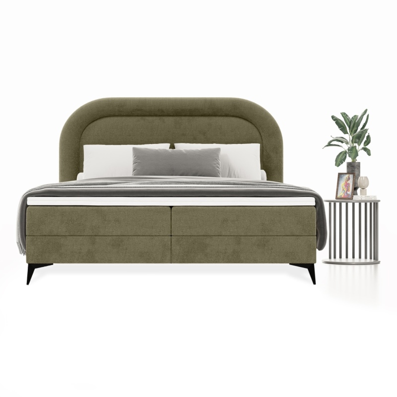 Łóżko Willow prezentuje nowoczesny design, który łączy w sobie prostą formę z funkcjonalnym wyposażeniem. Jego wysoki zagłówek podzielony na dwie, miękkie poduchy, gwarantuje wygodę i komfort podczas relaksu przy ulubionej książce czy serialu. Kieszonka w bocznej części łóżka, pomoże ci przechować telefon, książkę lub inne drobiazgi, które chcesz mieć pod ręką.Łóżko jest obite miękką, welurową tkaniną w oliwkowozielonym kolorze, która wniesie do Twojego wnętrza świeżość i subtelną elegancję. Tkanina Castel poza tym, że prezentuje się bardzo elegancko to charakteryzuje się funkcją łatwego czyszczenia, dzięki czemu bez problemu usuniesz nawet najtrudniejsze plamy.