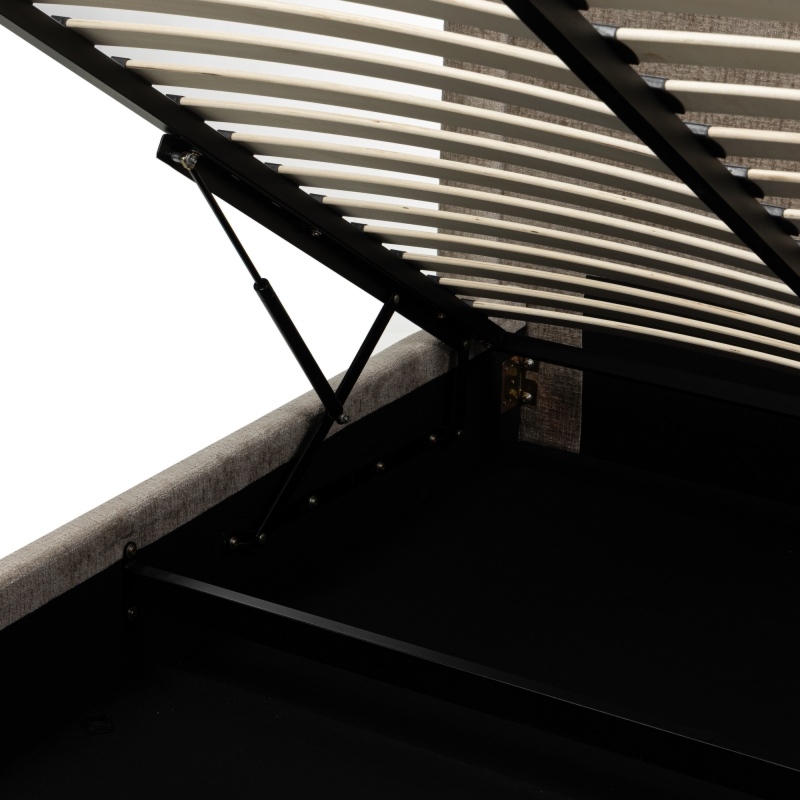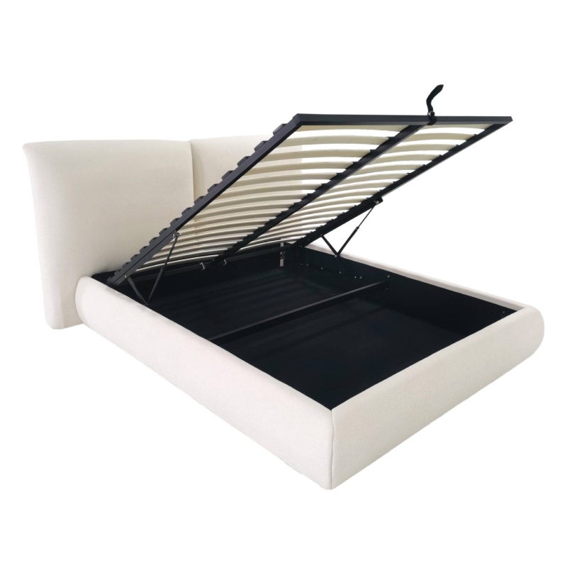 To, co wyróżnia łóżko Fencee, to jego praktyczny pojemnik, ukryty pod stelażem. Dzięki niemu zyskujesz dodatkowe miejsce do przechowywania nie tylko pościeli, ale także sezonowych ubrań czy innych przedmiotów, które chcesz mieć zawsze pod ręką, a jednocześnie poza zasięgiem wzroku. Zapomnij o bałaganie i ciesz się uporządkowaną przestrzenią! Dostęp do pojemnika jest niezwykle łatwy i lekki, dzięki zastosowaniu innowacyjnych podnośników gazowych. Wystarczy jeden ruch, aby unieść stelaż i wygodnie korzystać z całej dostępnej przestrzeni.
