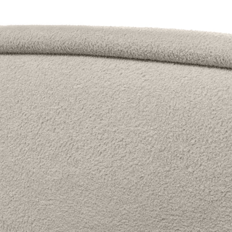 Zanurz się w miękkości beżowej tkaniny boucle, która nie tylko zachwyca swoim wyglądem, ale jest także niezwykle przyjemna w dotyku i przyjazna dla skóry. Jej trudnozapalne właściwości gwarantują bezpieczeństwo i spokój ducha, pozwalając Ci cieszyć się chwilami relaksu bez obaw. Solidny szkielet, wykonany z wysokogatunkowej białej płyty laminowanej oraz drewna, zapewnia stabilność i trwałość, co sprawia, że łóżko Rosario to inwestycja w Twój komfort.