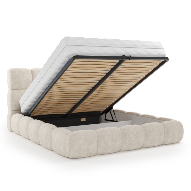 Munni to nie tylko synonim piękna, ale także funkcjonalności. Wyposażone w wyściełany tkaniną pojemnik, zapewnia dodatkowe miejsce do przechowywania. Dołączony do niego metalowy stelaż z podnośnikiem gazowym, gwarantuje komfort snu oraz łatwe i wygodne otwieranie.