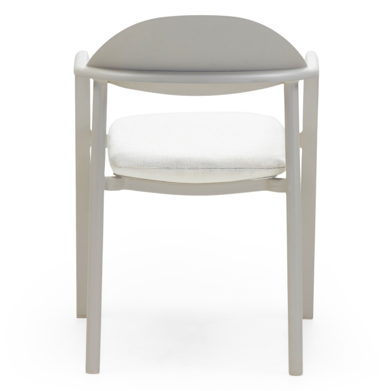 Zaokrąglona forma krzesła nadaje mu wizualnej lekkości i subtelności, przez co stanie się świetnym uzupełnieniem każdej nowoczesnej przestrzeni ogrodowej. Całość dopełnia wygodna, beżowa poduszka na siedzisku, zapewniająca dodatkowy komfort podczas wypoczynku.