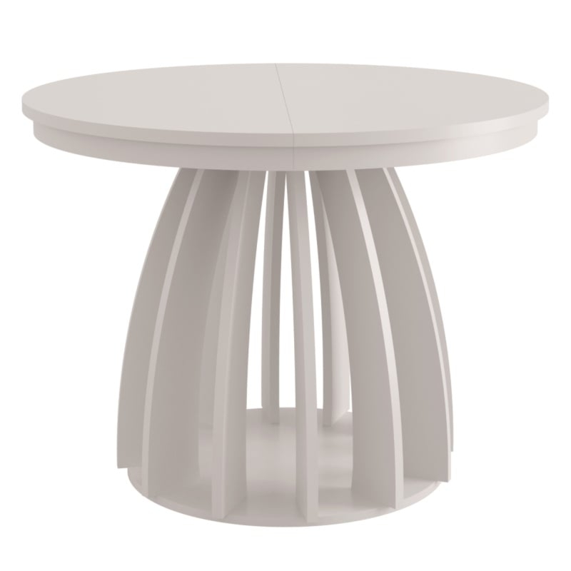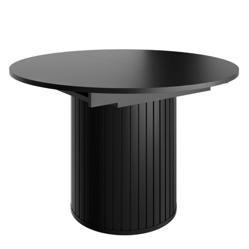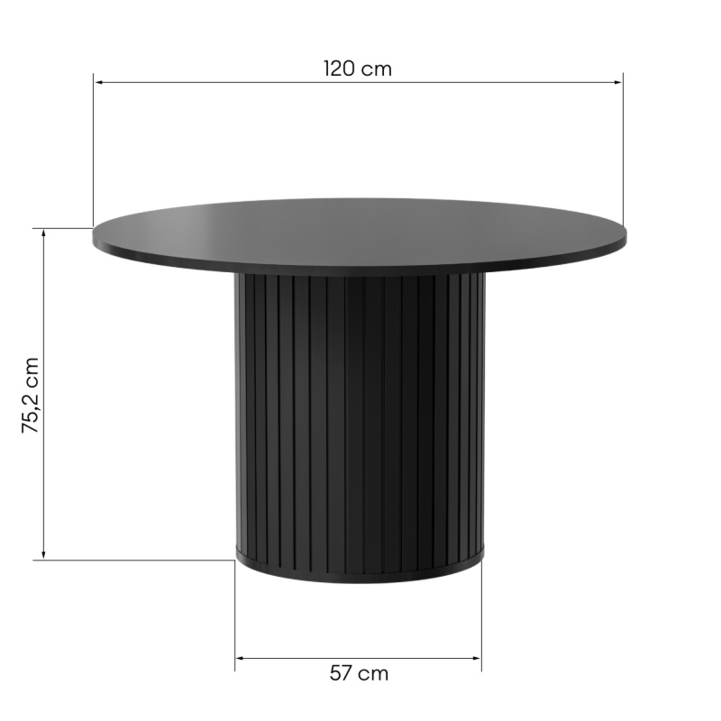 Stół Foldo to esencja nowoczesnego designu połączona z wyjątkową funkcjonalnością, idealnie wpisująca się w eleganckie i współczesne wnętrza. Jego okrągły blat harmonijnie współgra z designerską, lamelową podstawą o cylindrycznym kształcie, stając się centralnym punktem każdej jadalni.