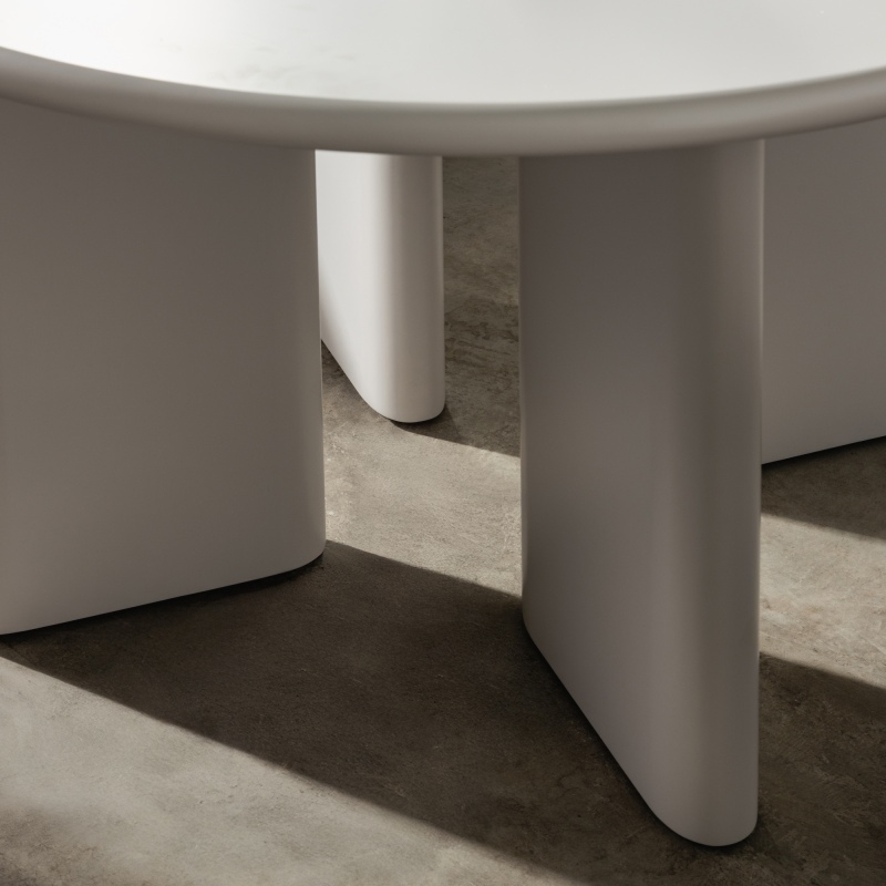 Stół Joki łączy współczesną formę z funkcjonalnością, stając się centralnym punktem każdej jadalni. Jego okrągły blat tworzy przestrzeń, w której każdy może zająć wygodne miejsce, jednocześnie podkreślając minimalistyczną elegancję stołu.