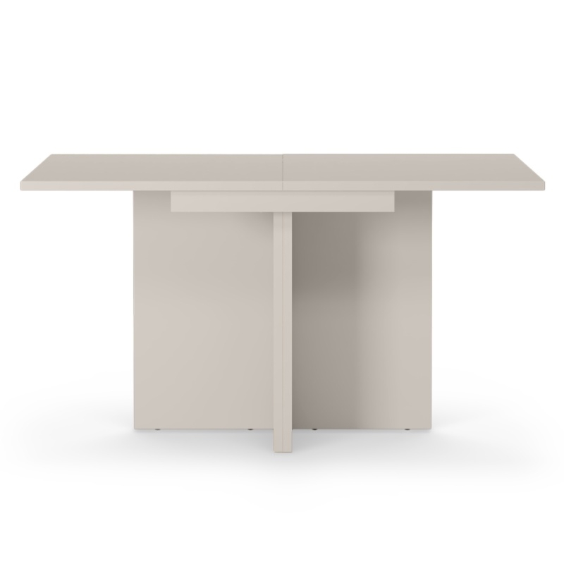 Konstrukcja stołu opiera się na solidnej płycie MDF, co gwarantuje trwałość i stabilność przez wiele lat. Matowe wykończenie w kolorze subtelnego beżowoszarego nadaje mu elegancji, która doskonale komponuje się z różnymi stylami wnętrz – od nowoczesnych po klasyczne.