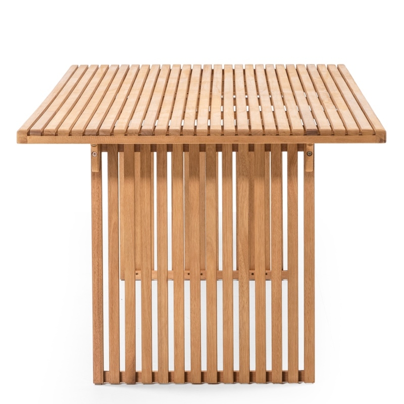 Marzysz o idealnym miejscu na letnie spotkania rodzinne czy przyjęcia ze znajomymi pod gołym niebem? Stół ogrodowy Familis ll jest właśnie tym, czego szukasz! Dzięki dużej powierzchni wynoszącej aż 240 cm, stół pomieści spore grono osób, zapewniając im komfortowe warunki do wspólnego spożywania posiłków czy relaksu na świeżym powietrzu. Co więcej, Familis ll wyróżnia się niebanalnym wzornictwem, które odmieni wygląd Twojej przestrzeni outdoorowej, nadając jej wyjątkowy urok.Wykonany z solidnego drewna eukaliptusowego, Familis ll stanowi doskonałą propozycję dla tych, którzy poszukują wysokiej jakości w przystępnej cenie. Drewno eukaliptusowe zapewnia niezwykłą odporność na uszkodzenia mechaniczne, a zawarte w nim naturalne oleje chronią stół przed działaniem wilgoci, dzięki czemu zachowuje on swój wyjątkowy wygląd przez wiele lat.Warto podkreślić, że drewno użyte do produkcji stołu posiada certyfikat FSC® – pochodzi ono z lasów zarządzanych zgodnie z zasadami zrównoważonego rozwoju. Dzięki temu nie tylko inwestujesz w komfort, ale także dbasz o przyszłość naszej planety.Aby stół utrzymał swój doskonały stan przez długi czas w okresie zimowym zaleca się przechowywanie go w suchym i przewiewnym miejscu pod zadaszeniem, zapewniając mu ochronę przed warunkami atmosferycznymi.
