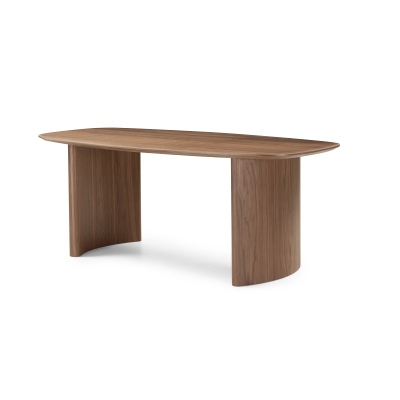 Dwie solidne nogi, lekko zaokrąglone, tworzą unikalny kształt, który wyróżnia stół Oriento na tle innych modeli. Każdy detal został zaprojektowany z myślą o najwyższej jakości wykonania, co gwarantuje długowieczność produktu.