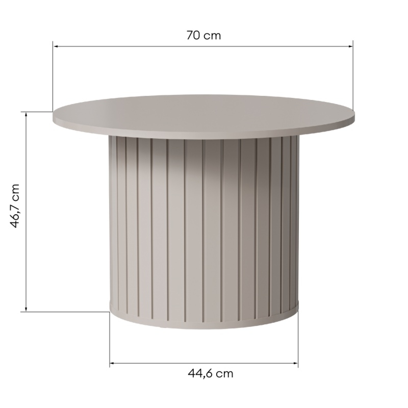 Stolik kawowy Arce to połączenie elegancji i prostoty, które doda wyjątkowego akcentu każdemu wnętrzu. Jego ciemnobeżowy kolor i matowe wykończenie przyciągają wzrok, wprowadzając świeżość do przestrzeni. Okrągły blat nie tylko dodaje optycznej lekkości, ale również oferuje wygodną powierzchnię do codziennego użytkowania. Arce doskonale komponuje się z wieloma aranżacjami, nadając im unikalny charakter. Wybierz stolik Arce i stwórz przestrzeń, która zachwyca!