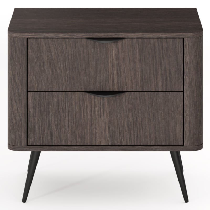 Veris to szafka nocna, która łączy spokojną formę z wyrazistym charakterem. Jej zaokrąglone boki oraz ciemne wybarwienie dębu dunin tworzą harmonijną kompozycję. To przykład nowoczesnej klasyki, w której subtelne detale, proporcje i kontrasty decydują o wyjątkowym designie. Veris emanuje elegancją, doskonale dopełniając wystrój sypialni. Funkcjonalność zapewniają dwie pojemne szuflady, które pomieszczą wszystkie niezbędne drobiazgi – od książki po ładowarkę. Całość dopełniają metalowe, czarne nóżki i uchwyty, które podkreślają minimalistyczny i stylowy charakter mebla.